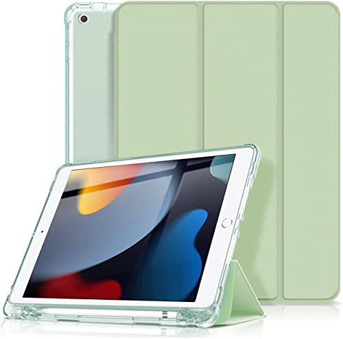 Visaccy Couverture iPad Compatible avec iPad 9e Génération 2021 10.2" / 8e 2020 / 7e 2019 avec Stylus Chest [Auto Wake/Sleep] Semi Transparent Doux TPU, Matcha