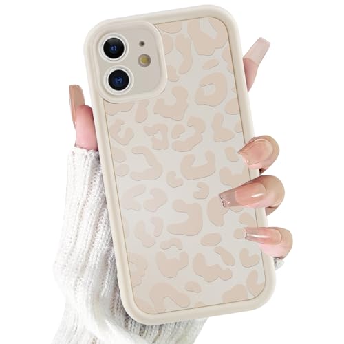 Saqmkil Coque pour iPhone 11, Aesthetic Design Léopard Motif Silicone Housse Étui, Femme Fille Anti-Rayures Protection Etui Gel TPU Souple Bumper Cover pour iPhone 11 6,1'', Beige