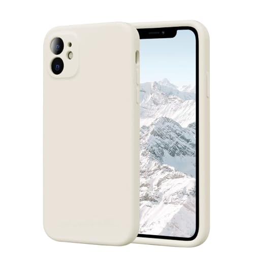 ROUMAYMAY Coque pour iPhone 11, Silicone Liquide Protection Amélioré [L'appareil Photo], avec Doublure en Microfibre Lisse Douce Anti-Rayures, Coque pour iPhone 11, Beige Blanc