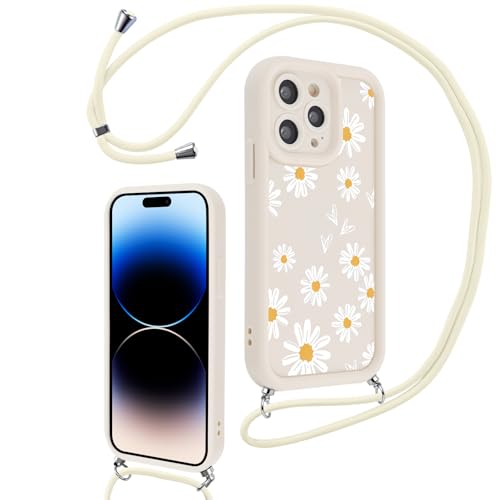 Xylota Coque Cordon pour iPhone 11 Pro 5,8", Aesthetic Motif Fleur Filles Étui Laniere Collier Réglable Corde Case, Mince Silicone TPU Bumper Antichoc Antichoc Housse Cover pour iPhone 11 Pro, Beige