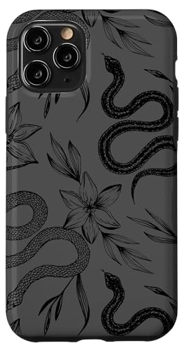 Dessin Serpent Noir et Fleur Gris Coque pour iPhone 11 Pro