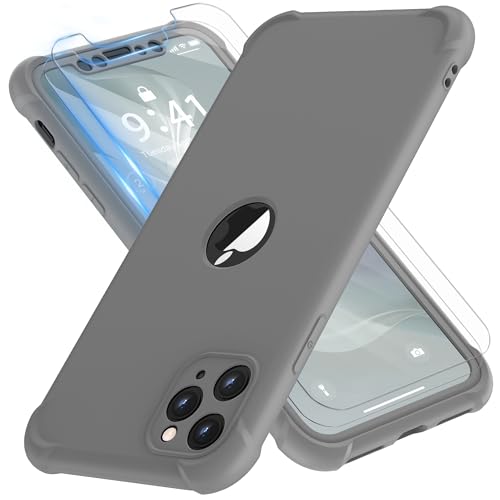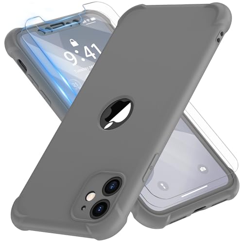 ORETECH Coque Silicone pour iPhone 11 avec 2 Pièces Verre Trempé Protection écran,2 en 1 Antichoc Souple TPU Rigide PC Housse de Protection Etui pour iPhone 11 Case 6.1" Gris Espace