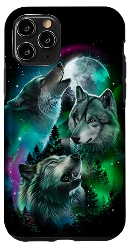Loup gris chassant dans la forêt sous la pleine lune et aurore Coque pour iPhone 11 Pro