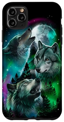 Loup gris chassant dans la forêt sous la pleine lune et aurore Coque pour iPhone 11 Pro Max
