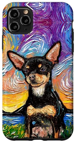 Illustration Chihuahua Nuit étoilée Noir et Brun Clair Coque pour iPhone 11 Pro Max