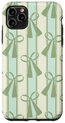 Nœuds Vert Sauge et Vert écume de mer et Rayures en Ruban Coque pour iPhone 11 Pro Max