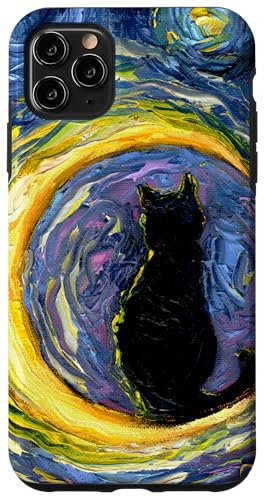 Chat Noir sur Croissant de Lune Nuit étoilée Illustration céleste Coque pour iPhone 11 Pro Max