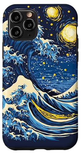 La Grande Vague vs Nuit étoilée Hokusai vs Van Gogh - Mashup Coque pour iPhone 11 Pro