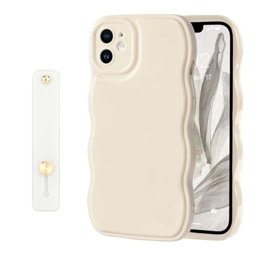 NITITOP Coque pour iPhone 11 Mignonne Simple et Ondulée avec Dragonne Ajustable Poignée de Maintien en Main Femmme Fille Housse de Protection en Silicone Souple-Blanc