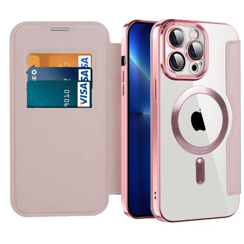 IMIRST Étui Magnétique pour iPhone 12, [Compatible avec MagSafe] [Blocage RFID] Housse à Rabat en Cuir Coque de Téléphone Transparente Antichoc pour Apple iPhone 12, WD Pink