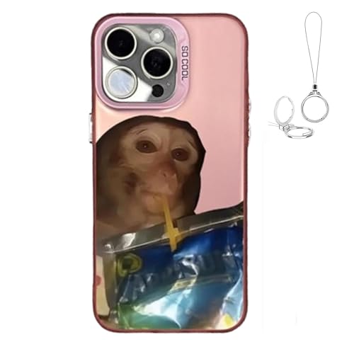 Générique 2026 New Funny Monkey Drinking Juice Phone Case, All-Inclusive Shockproof TPU Protective Cover, Compatible with iPhone 17 Pro Max to 11 Series (for iPhone 12 Pro Max,Pink)