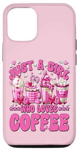 Just A Girl Who Loves Coffee Quote Pink Valentines Latte Coque pour iPhone 12/12 Pro
