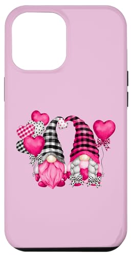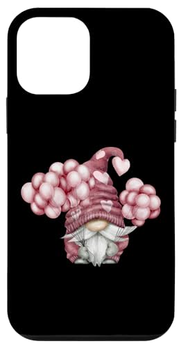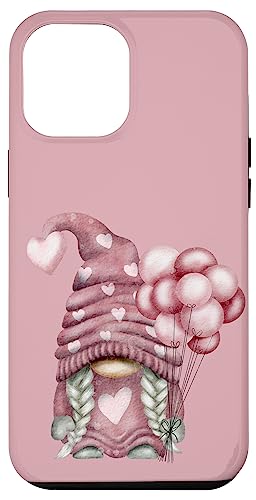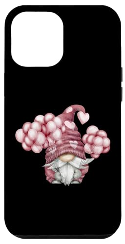 Pink Valentines Motif with Heart Ballons Cute Love GNOME Coque pour iPhone 12 Pro Max
