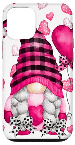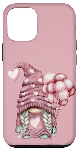 Pink Valentines Motif with Heart Ballons Cute Love GNOME Coque pour iPhone 12/12 Pro