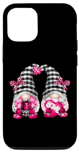 Valentines GNOME Graphic Cute Pink Buffalo Plaid Love Hearts Coque pour iPhone 12/12 Pro
