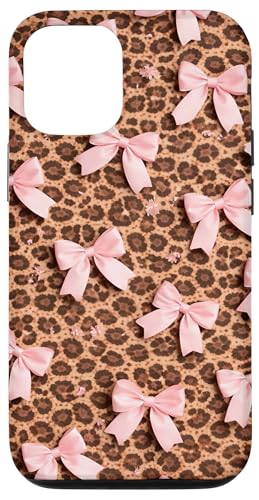 Pink Bows Ruban Coquette sur Motif léopard Marron Coque pour iPhone 12/12 Pro