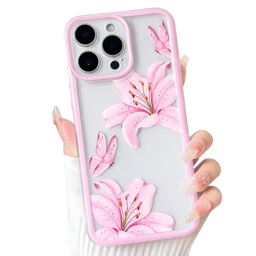 NITITOP pour iPhone 12 Pro Max Coque Transparente Mignonne Floral Fleur Lys Papillon Motif Clair pour Femme Fille Cadre Coloré Éclatant Housse Antichoc en TPU Souple Protection - Rose