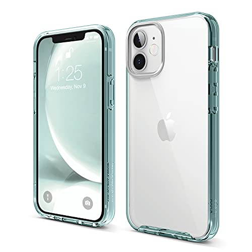 elago Coque Hybride Transparente Compatible avec iPhone 12 Mini (5,4”) Étui Jaunissement Réduit, Dos PC Durable, Pare-Chocs Flexible Antichoc Case (Vert Menthe)