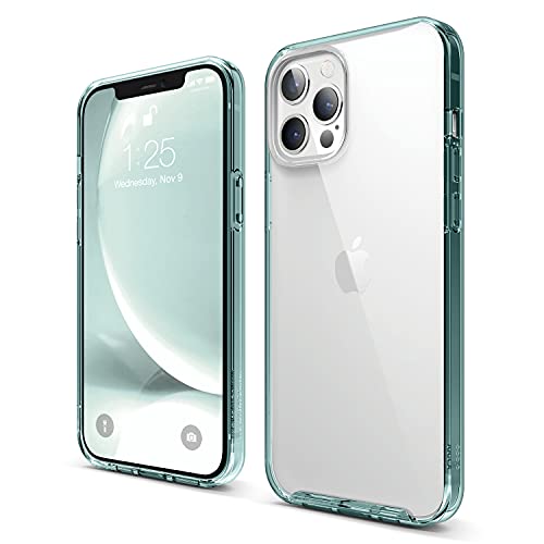 elago Coque Hybride Transparente Compatible avec iPhone 12 Pro Max (6,7”) Étui Jaunissement Réduit, Dos PC Durable, Pare-Chocs Flexible Antichoc Case (Vert Menthe)