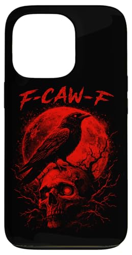 F-Caw-F Corbeau Rouge Lune Corbeau Sombre Gothique Oiseau Humour Gothique Coque pour iPhone 13 Pro