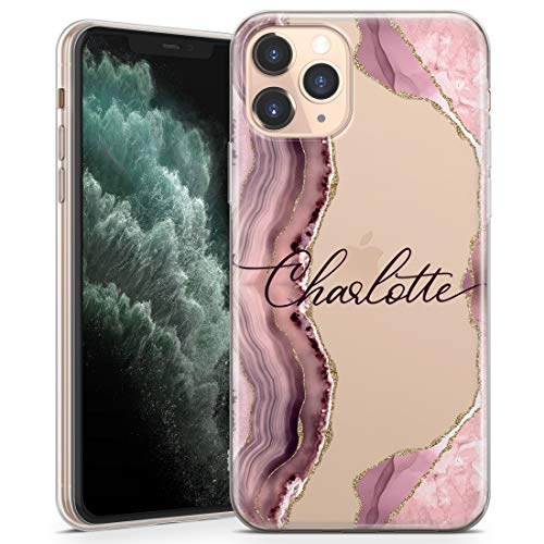 TULLUN Coque De Téléphone Personnalisée pour iPhone 13 Mini - Clair Doux TPU Gel Mignon Marbre Rose Féminin Coutume Individuel Style Conception Étui Texte - Nom