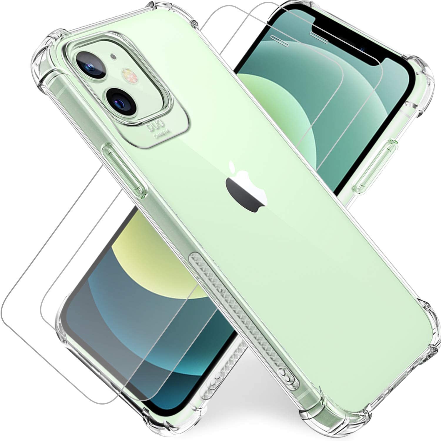 Coque transparente électroplaquée verte pour iPhone 17 Pro Max, 16, 15 Plus, 14, 13 et 12, protection intégrale de l'objectif, contour antichoc et revêtement anti-reflets. Compatible avec iPhone 13 P