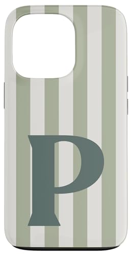 Monogramme Lettre P Vert Jade et Rayures Verticales Blanches Douces Coque pour iPhone 13 Pro