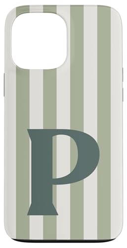 Monogramme Lettre P Vert Jade et Rayures Verticales Blanches Douces Coque pour iPhone 13 Pro Max