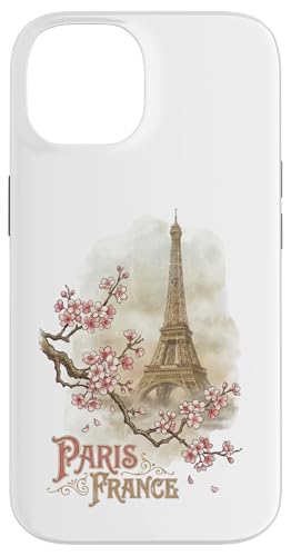 Vintage Paris France Tour Eiffel Fleurs de Cerisier Coque pour iPhone 14