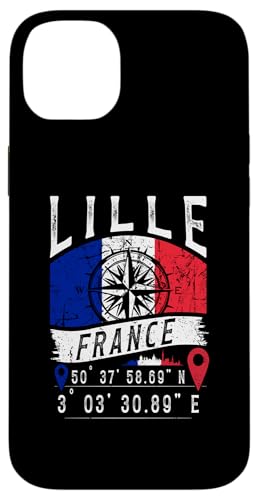 Lille France Flag GPS Coordonnées de Lille Coque pour iPhone 14 Plus
