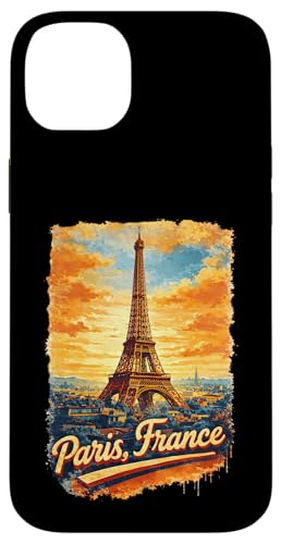 Souvenir Aquarelle rétro Tour Eiffel Paris France Coque pour iPhone 14 Plus