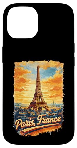 Souvenir Aquarelle rétro Tour Eiffel Paris France Coque pour iPhone 14