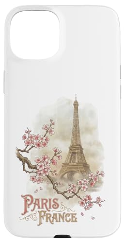 Vintage Paris France Tour Eiffel Fleurs de Cerisier Coque pour iPhone 15 Plus