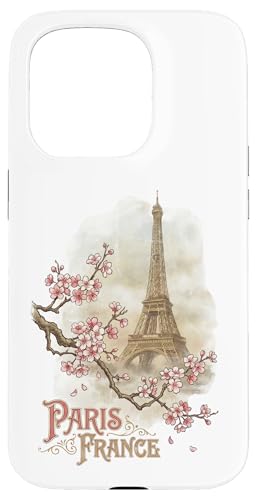 Vintage Paris France Tour Eiffel Fleurs de Cerisier Coque pour iPhone 15 Pro