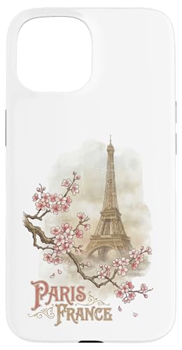 Vintage Paris France Tour Eiffel Fleurs de Cerisier Coque pour iPhone 15