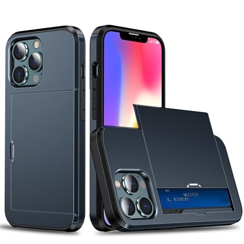 Étui portefeuille coulissant pour iPhone 16e, 15, 14, 13, 12, 11, 16 Pro Max, Mini, XS, XR, 7, 8 Plus, SE. Coque rigide en polycarbonate résistant, bleu marine. Compatible également avec iPhone 14 Pr
