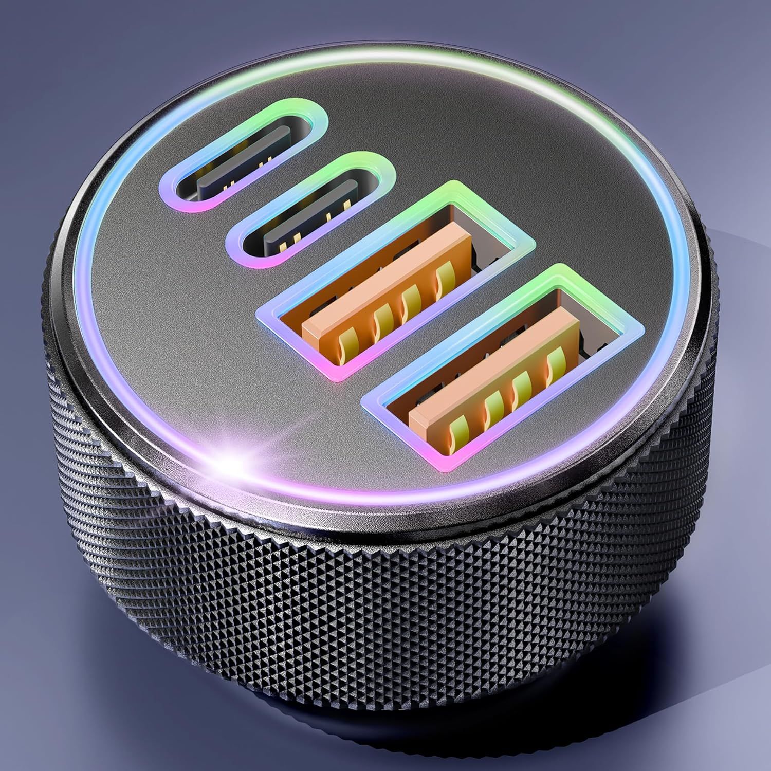 90w Usb C Allume Cigare, 12v Usb C Chargeur Voiture Rapide 4-Port Pd&qc 3.0 Type-C Pr Adaptateur Pour Iphone 16/15/14/13/12/11 Pro 16e, Ipad, Galaxy S25 S24, Google Pixel 9/8/7, Macbook