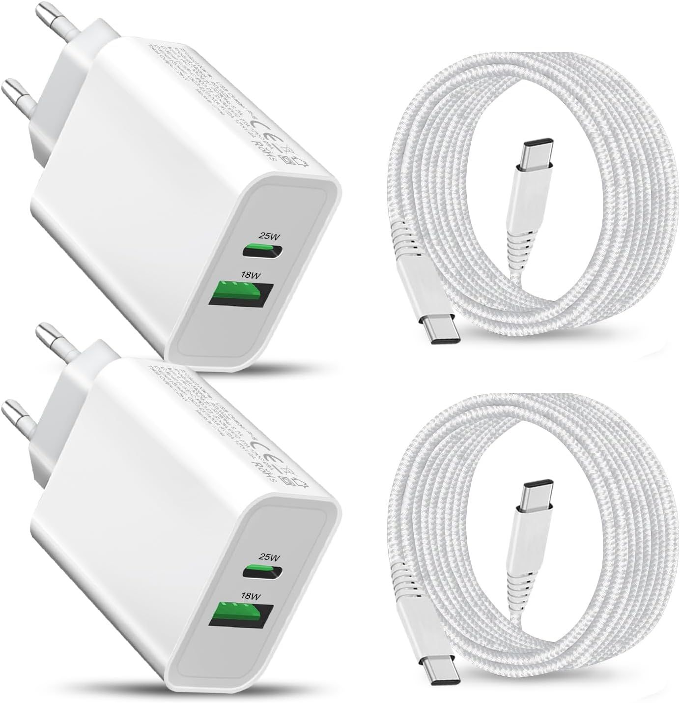 lbgwp60-2Pack Chargeur Usb C 25W & 18W Et Cable Pour Samsung Galaxy A55 5G A25 A35 A54 A56 A36 A26 A34 S24 Plus Ultra/S23 Fe A15 A53 A14 A33 A23 A05S/S22 S21,Iphone 15 Rapide Type C Pr Adaptateur Sec