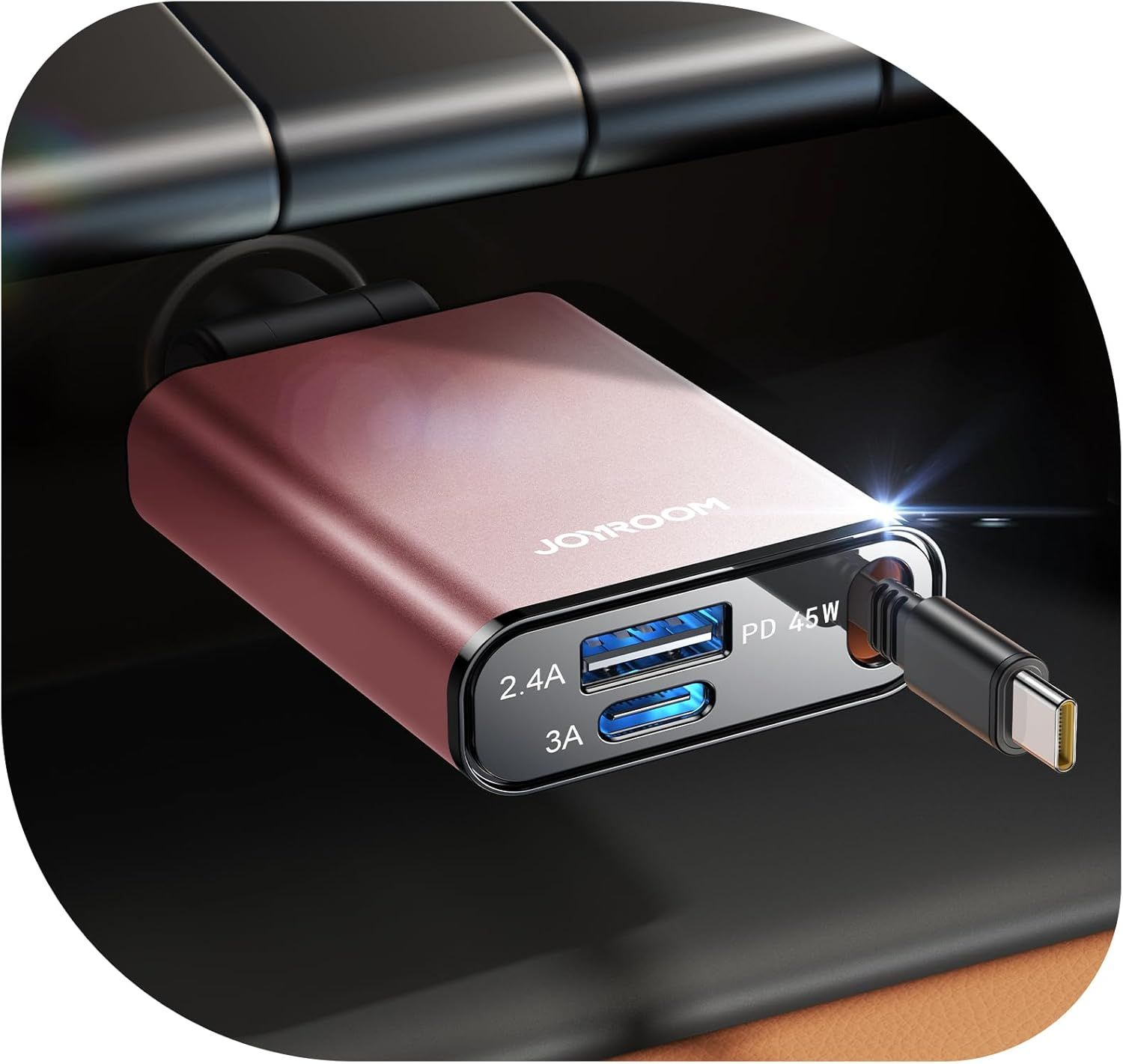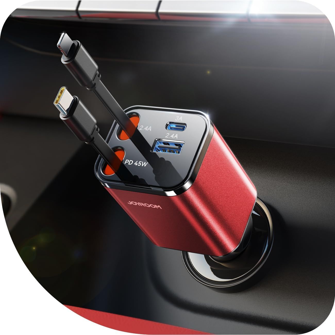 ¿2025 Ultra-Compact¿Joyroom Rétractable Allume Cigare Usb C,¿3-In-1¿57w 12v/24v Pr Allume Cigare, Charge Rapide Chargeur Voiture Accessoires, Car Charger Pour Iphone 16/15/ S25/S24/Ipad/Gps