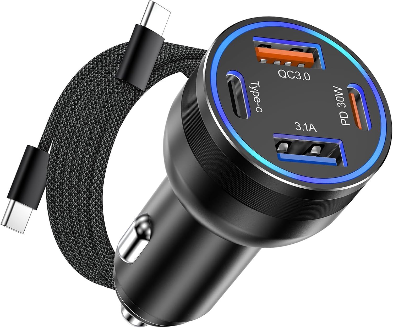 Chargeur Allume Cigare Usb Rapide, 60w Chargeur Voiture Usb C Pd&qc Adaptateur Pr Allume Cigare Usb C Rapide Chargeur Telephone Voiture Avec Câble Pour Galaxy S23 S22 S21,Iphone 15 Pro