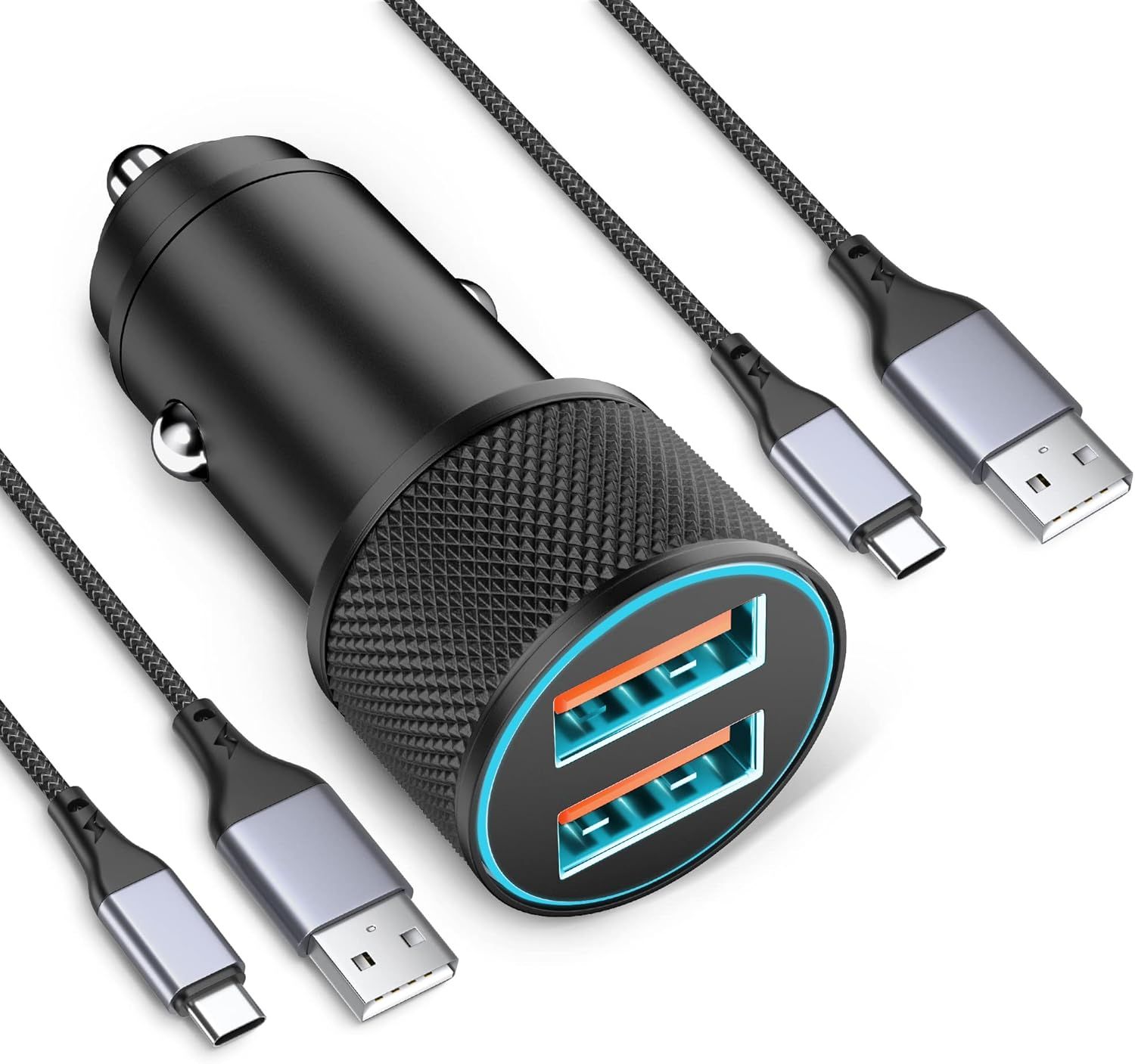 Luosike Allume Cigare Usb, Chargeur De Voiture Rapide 36w Avec 2 Câbles Tressés En Nylon De Type C, Pr Adaptateur Secteur En Alliage, Compatible Avec Iphone 16 15 Pro, S24/S23, Google 9/8/7
