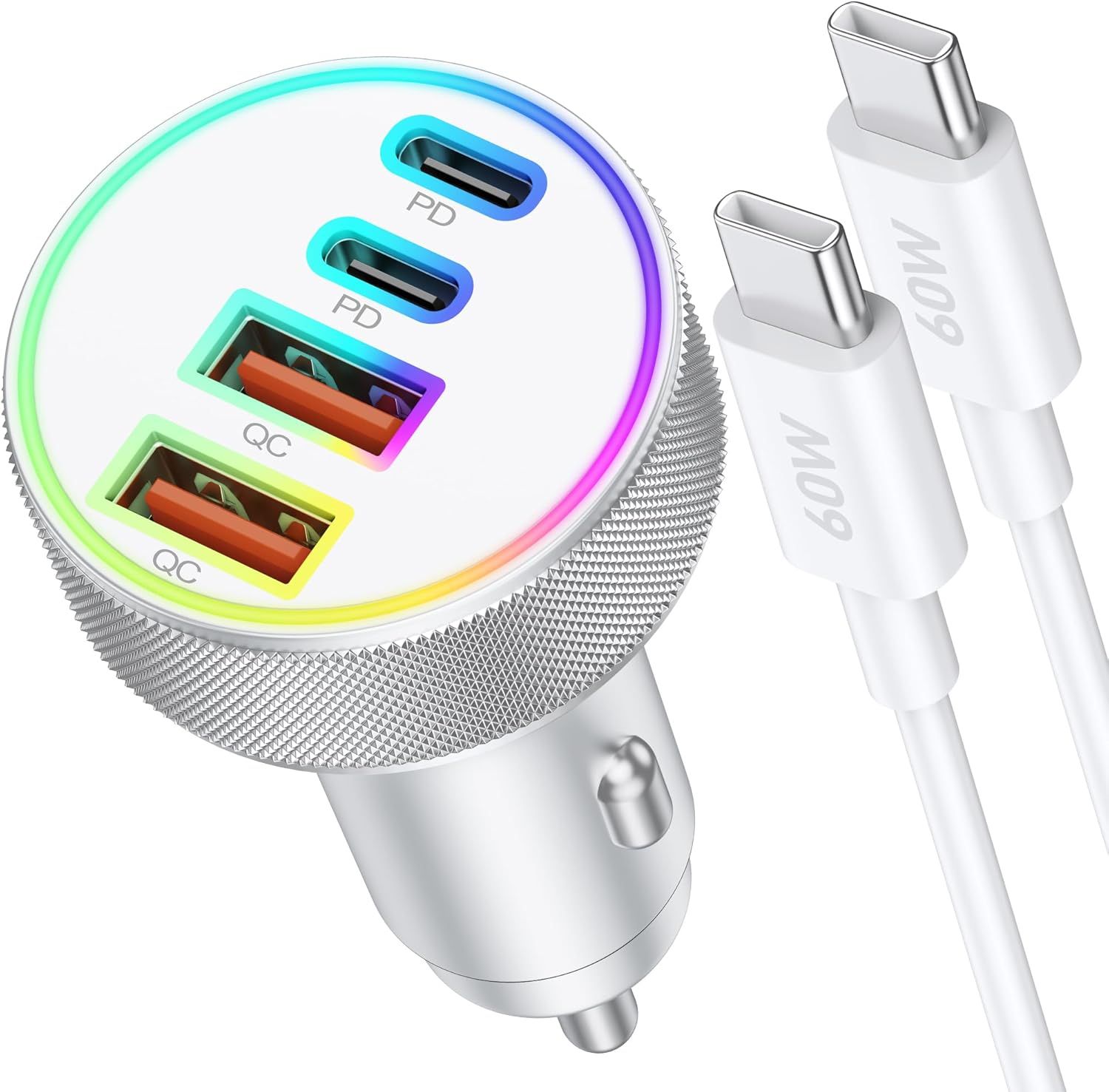 Chargeur Allume Cigare Usb C Rapide 60w, Chargeur De Batterie Voiture Pd+Qc3.0 Double Pr Allume Cigare 12v Usb Rapide,Chargeur Telephone Voiture Avec Cable Pour Iphone 16 15, S25 S24 S23 S22