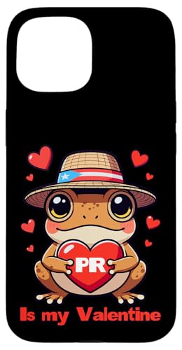PR is My Valentine Coquí Grenouille Portoricaine Saint-Valentin Coque pour iPhone 15