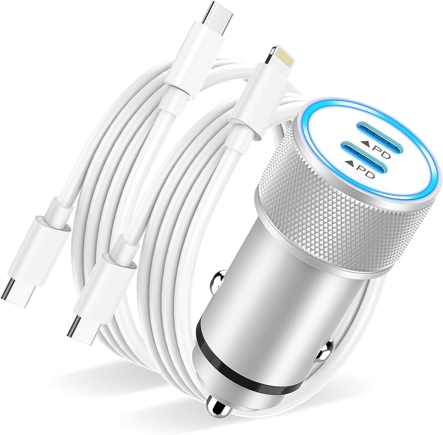Chargeur Allume Cigare Usb C Rapide 40w, Chargeur Voiture Usb C Charge Rapide Adaptateur Pr Allume Cigare Chargeur Telephone Voiture Avec 2x Câble Pour Iphone 16/15/14/13/12/11/Pro /Xs/X/Se/8/7
