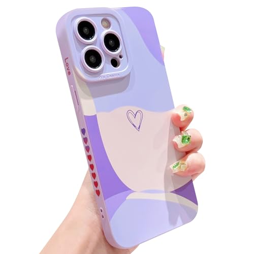 HZYKDWD Coque pour iPhone 15 Pro 6.1 Pouces,Cute Art Heart Protection Caméra Women Girls Soft TPU Antichoc Phone Case for iPhone 15 Pro-Violet