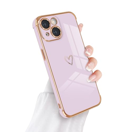 Coque iPhone 15 Étui pour Filles et Femmes, Mignon Motif Cœur d'amour Plaqué de Luxe iPhone 15 Coque Housse de Protection Antichoc en Silicone Souple pour iPhone 15-Violet