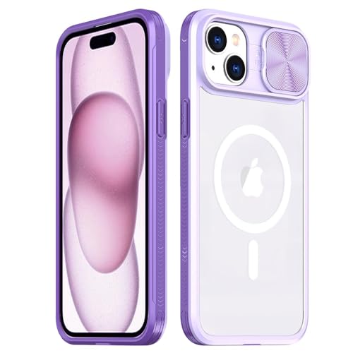 Rdyi6ba8 Clair Coque pour iPhone 15, Transparente Étui [Ne Jaunit Jamais] Protection de la Caméra Étui avec Coulisse Cache Objectif pour iPhone 15 - Violet