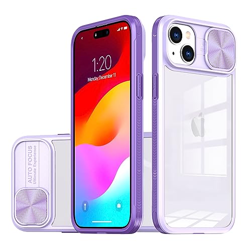 Dqtaoply Coque iphone 15, avec Lentille Coulissante Caméra Protection Étui Antichoc Silicone TPU + PC Housse Anti-Rayures Dos Transparente Case pour iphone 15(Violet)