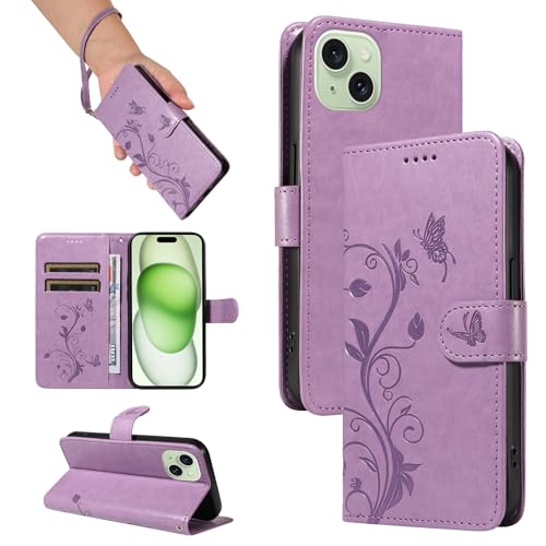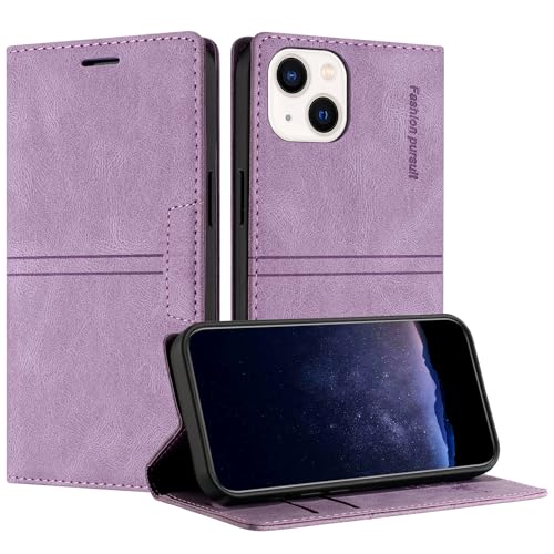TOUCASA Coque pour iPhone 15 (6,1 Pouce), Housse en Cuir PU Portefeuille Etui, TPU Fonction Support [Fentes pour Cartes] Anti-Choc Folio Magnetique Compatible avec iPhone 15 (Violet)