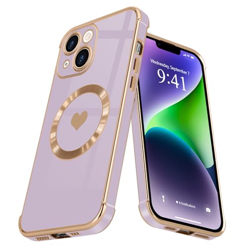 L-FADNUT Coque pour iPhone 15 Plus Coque Compatible avec MagSafe Motif Cœur Galvanisé Antichoc Résistante Silicone Étui pour iPhone 15 Plus Violet